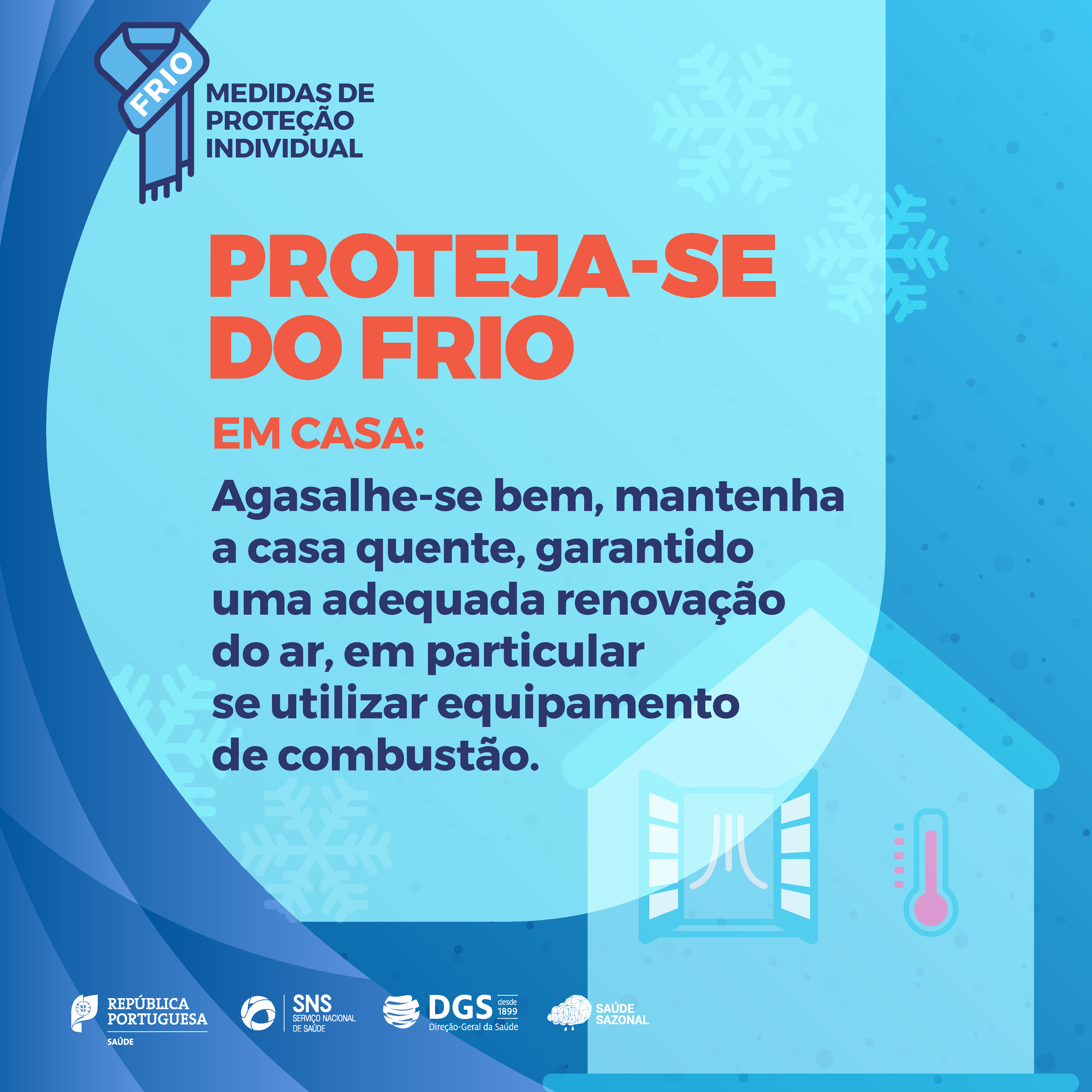 * Manter a casa quente, se utilizar braseiras ou lareiras, garantir uma adequada ventilação das habitações (renovação do ar);